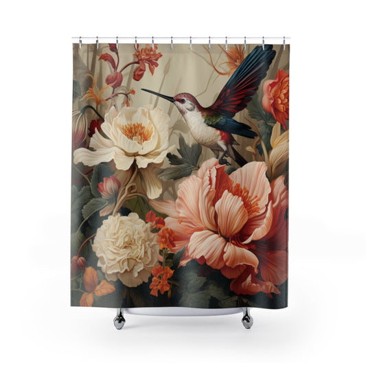 Humming Bird and Flowers 71"x74" Polyester Shower Curtain