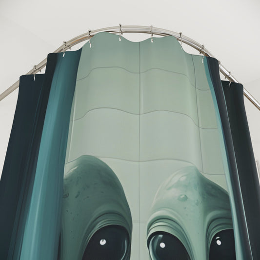 Peeking Aliens Polyester Shower Curtain