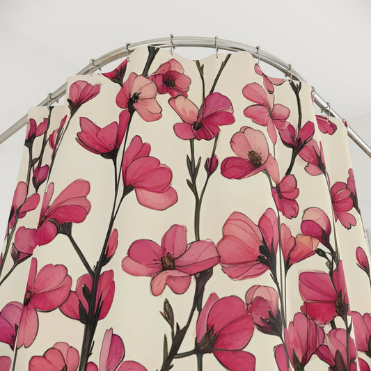Pink Blossoms Polyester Shower Curtain