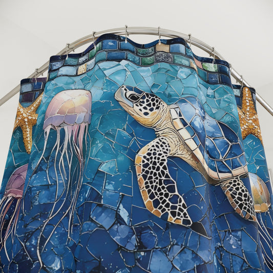 Sea Turtle Mosaic Look Polyester Shower Curtain