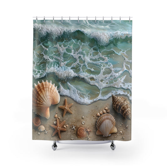 Seafoam & Shells Polyester Shower Curtain