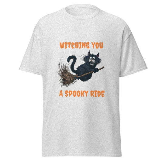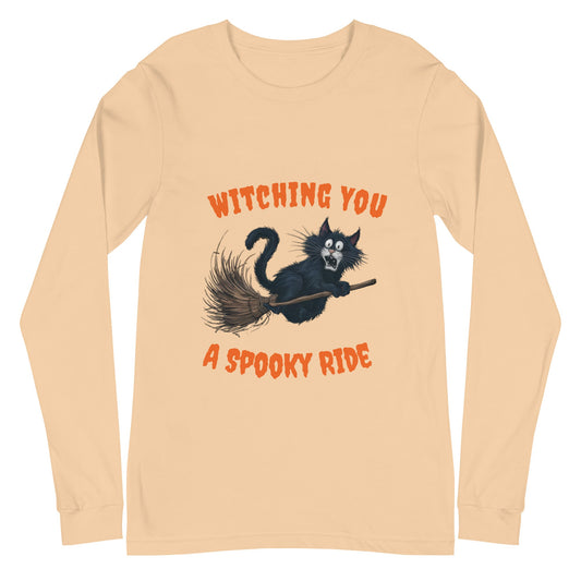 Black Cat & Broom "Witching you a Spooky Ride" Unisex Long Sleeve Tee