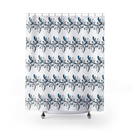 Blue Twirls Polyester Shower Curtain