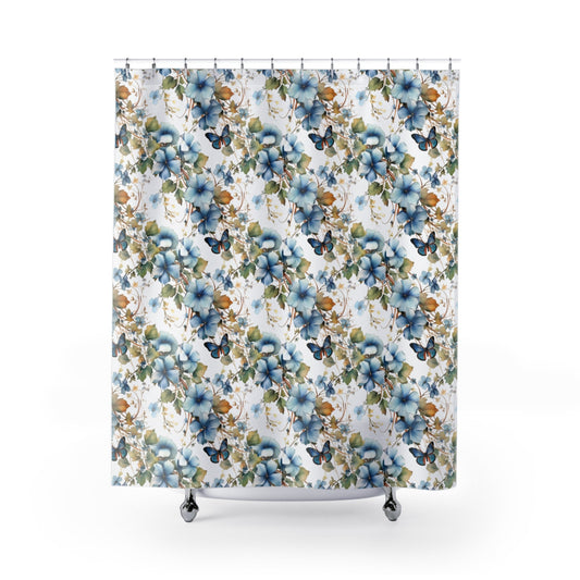 Blue Butterfly Polyester Shower Curtain