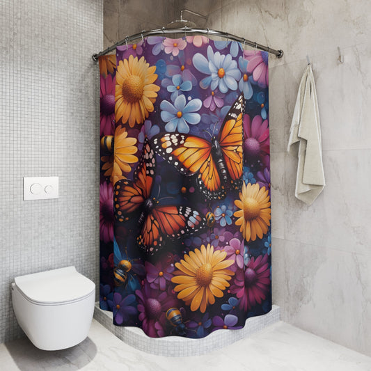 Butterfly Spring Polyester Shower Curtain - Colorful Bathroom Decor for Nature Lovers