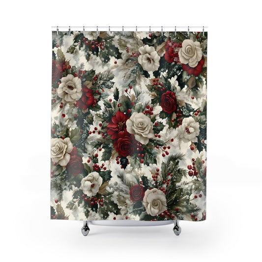 Christmas Floral Polyester Shower Curtain