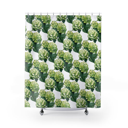 Green Hydrangea on White Polyester Shower Curtain