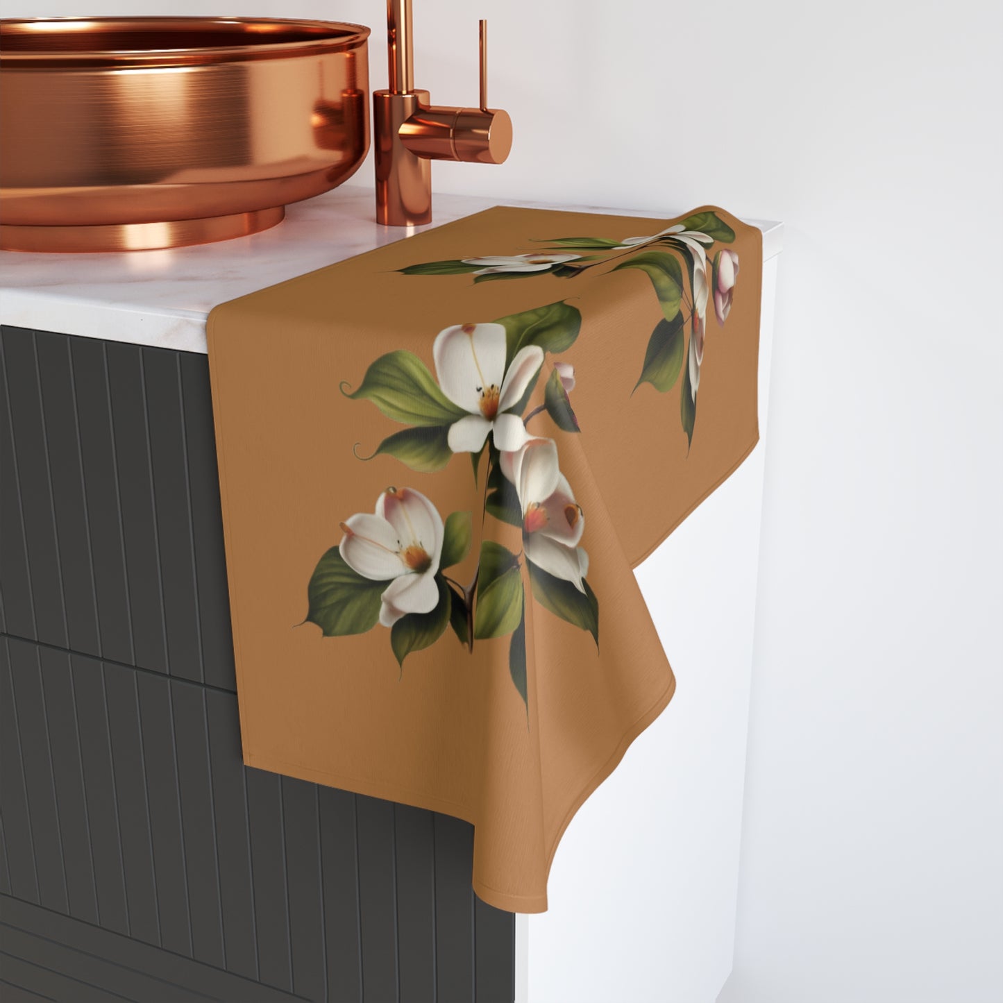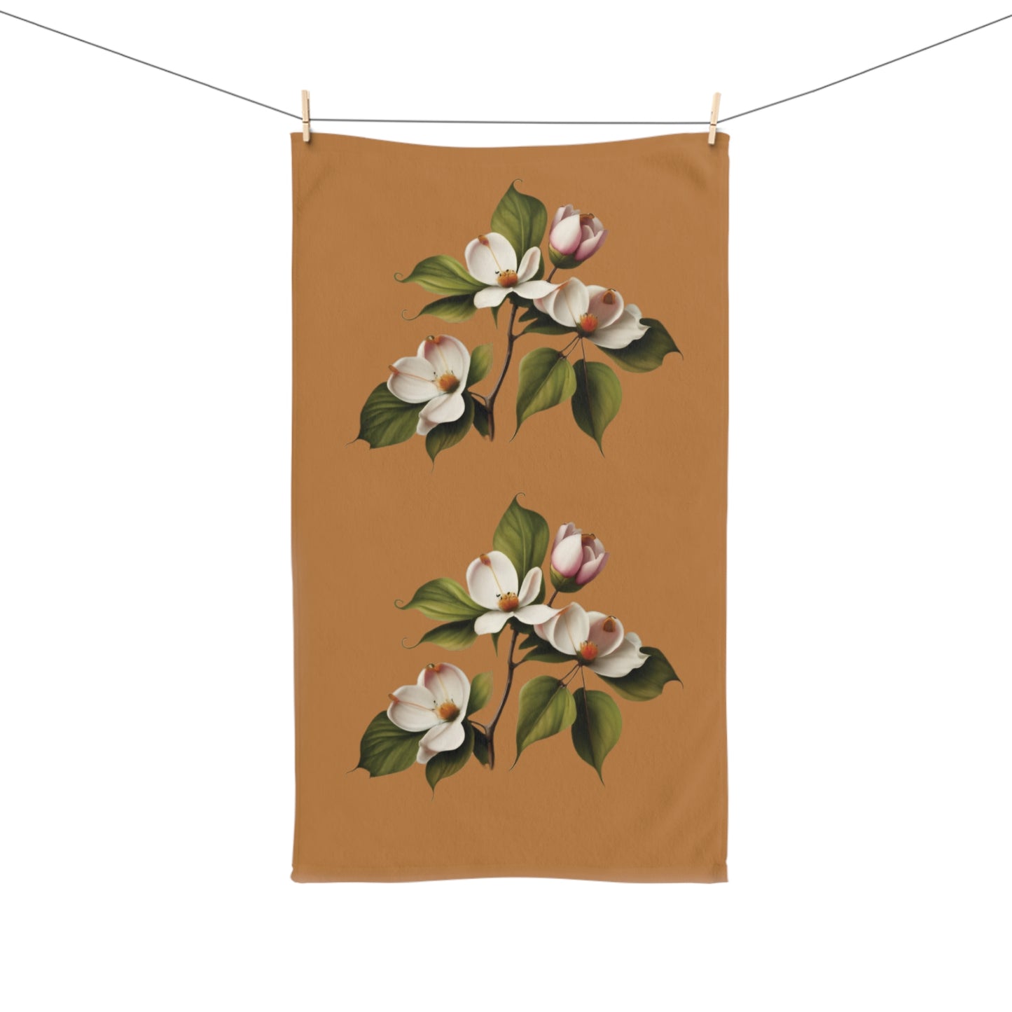 Introducing our luxurious Dogwood Blossom hand towel, designed to elevate the ambiance of your bathroom with an air of elegance. This exquisite towel features a charming Dogwood Blossom design that adds a touch of sophistication to any space.